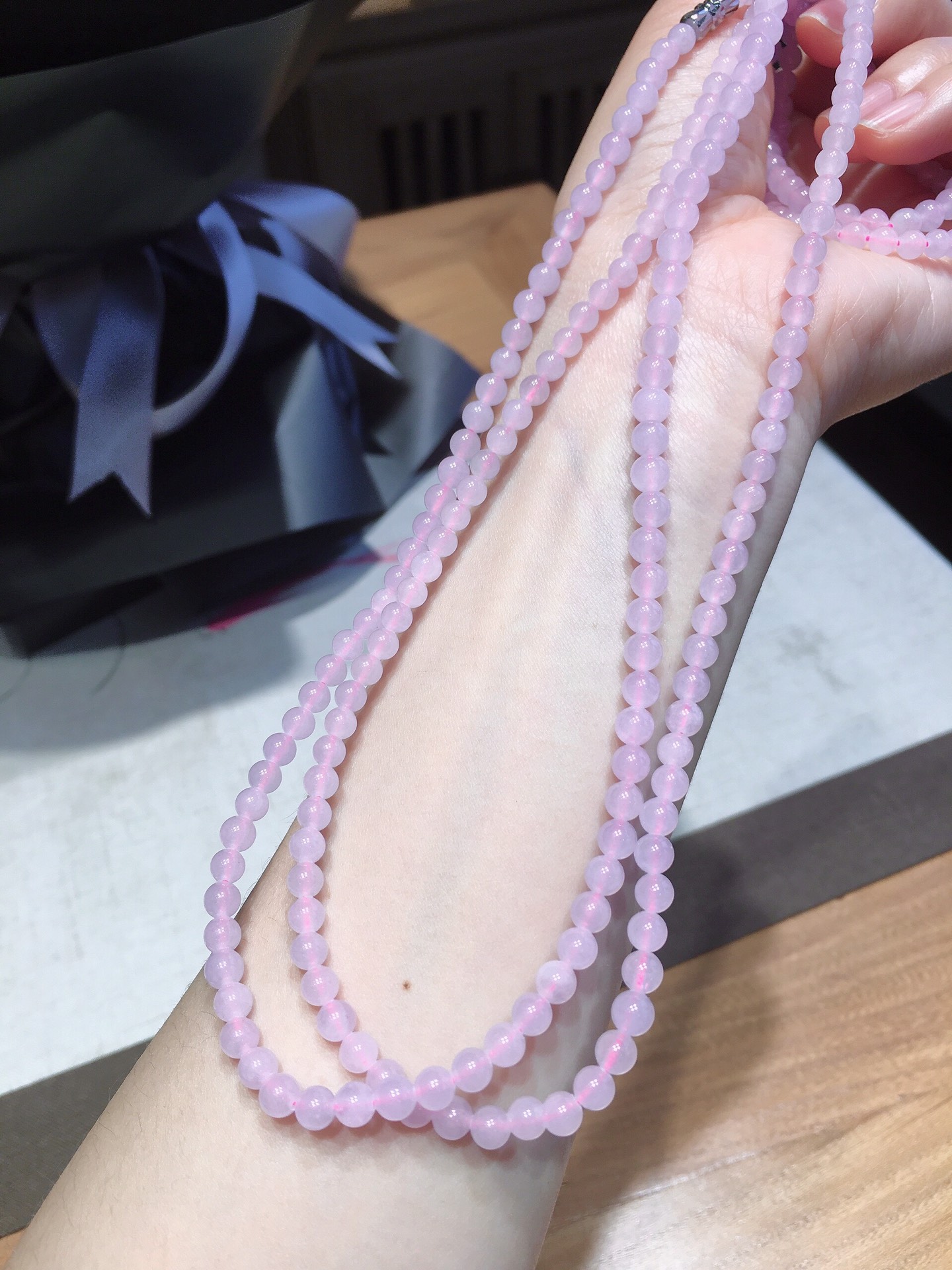 粉紫圆珠珠链,给人一种美轮美奂的奇幻感受,还氤氲弥漫着醉人的芬芳,散发着独特的浪漫气质。